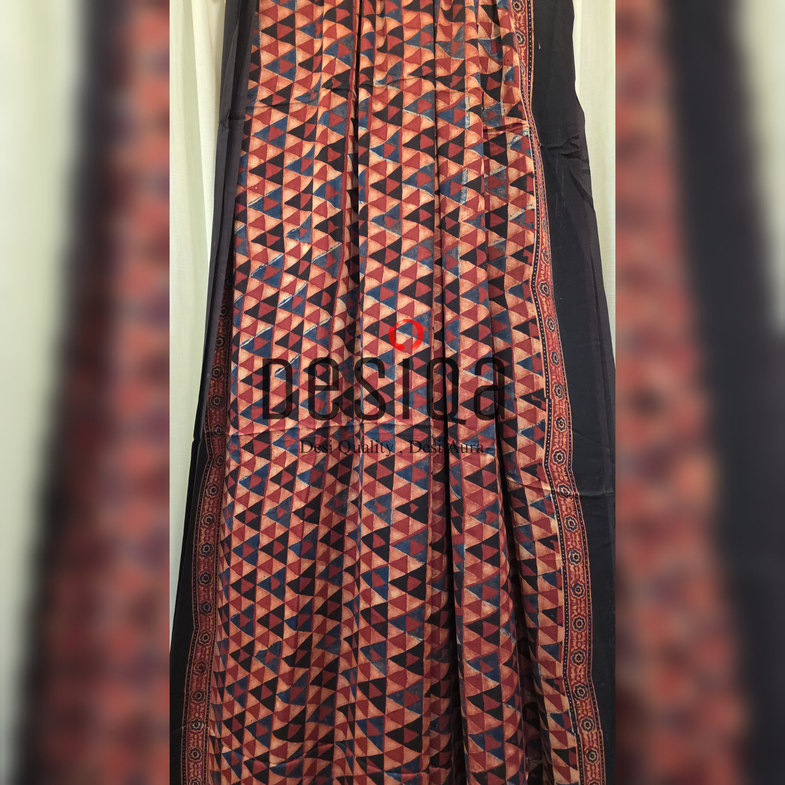 BLack-Red Colour Pure Hand Block Ajrakh Print Modal Silk Saree