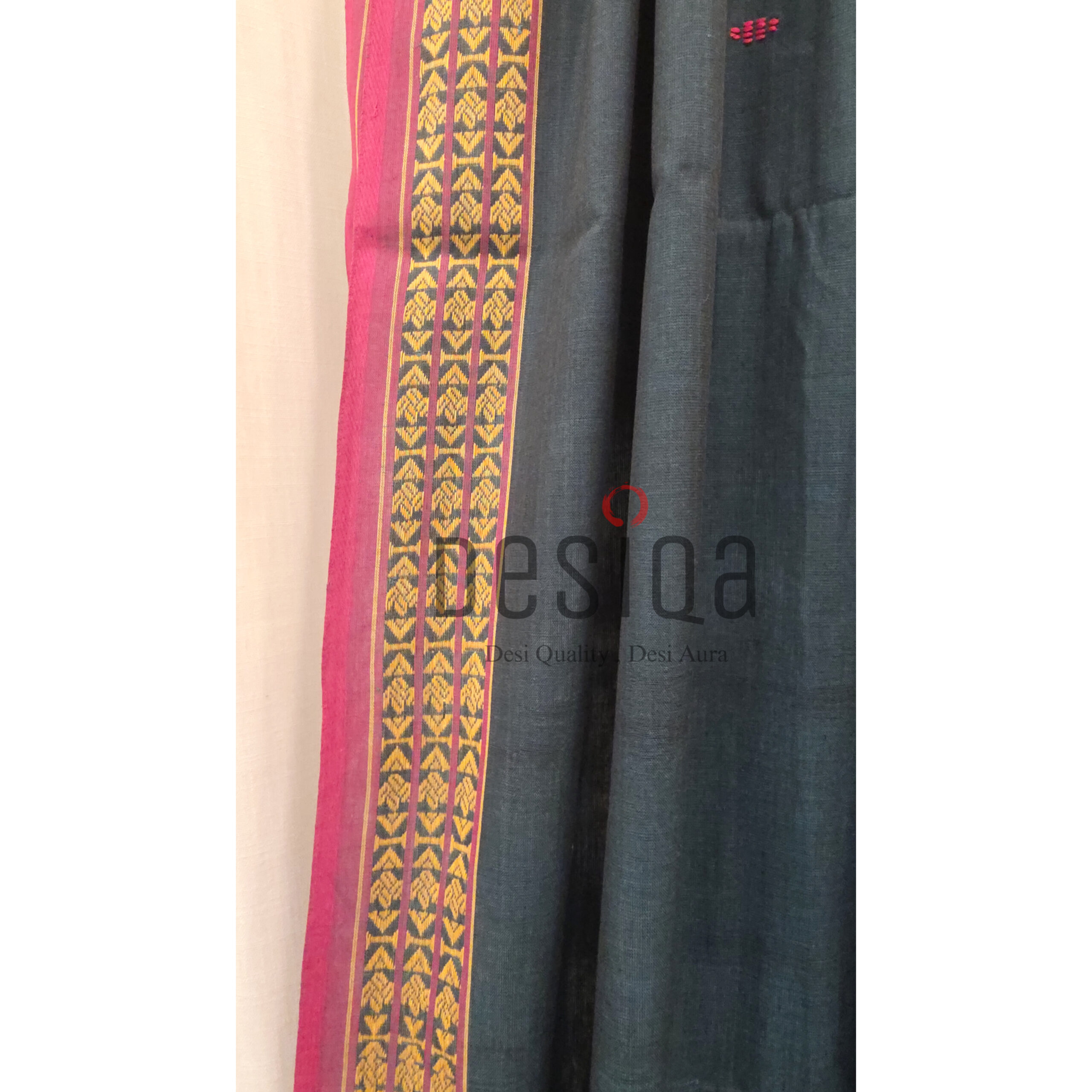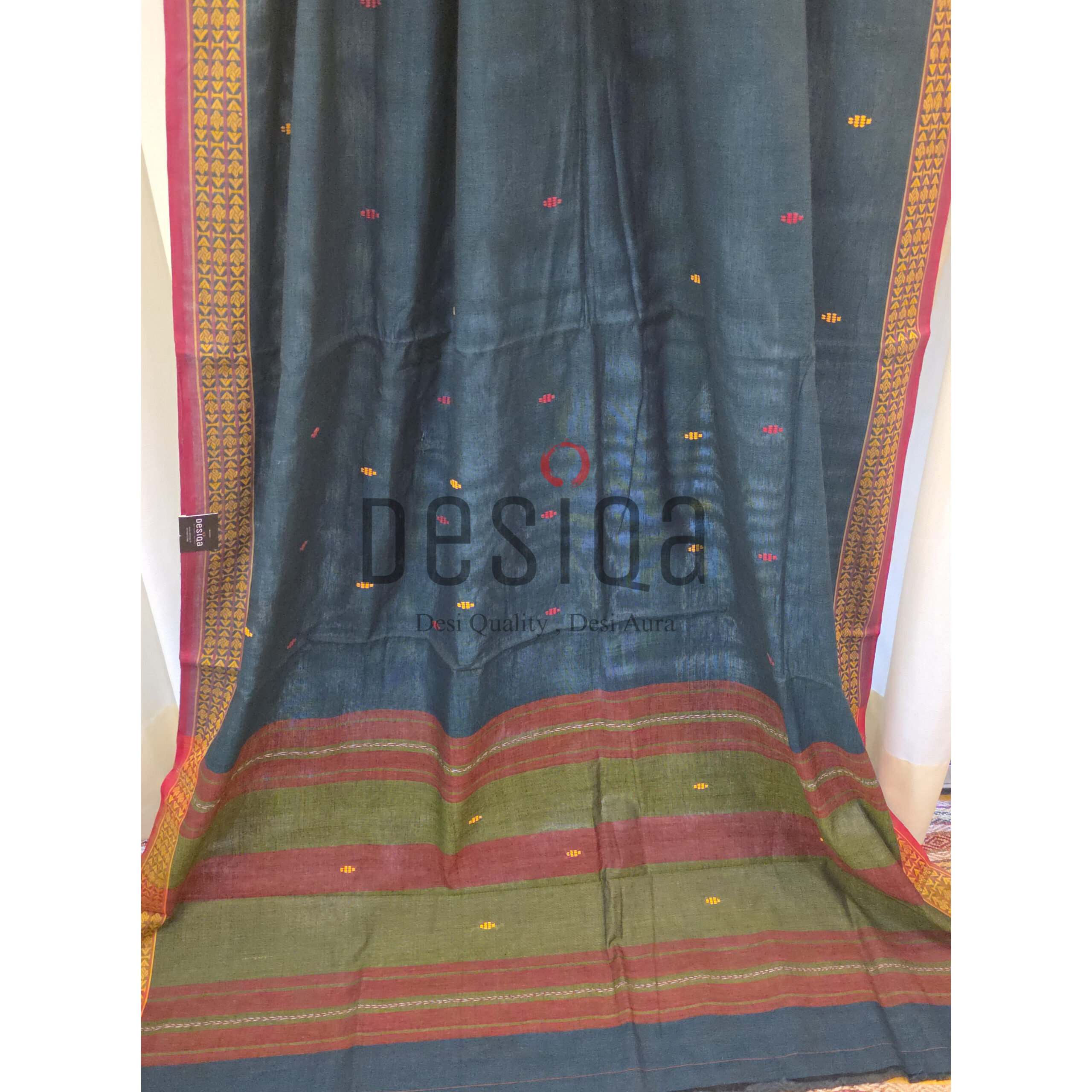 Bottle Green Colour Pure Cotton Dhonekhali Handloom Sarees
