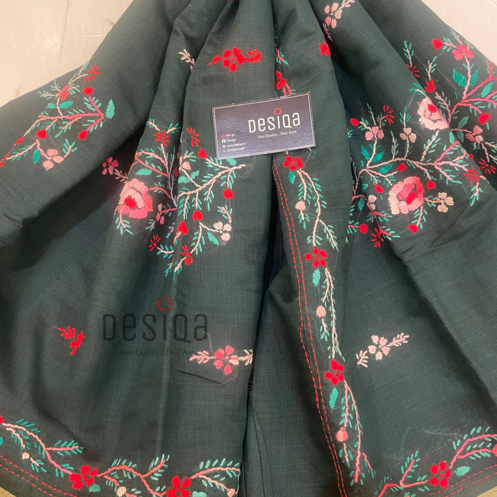 Bottle Green Colour Chanderi Cotton Silk with Hand Embroidery Saree