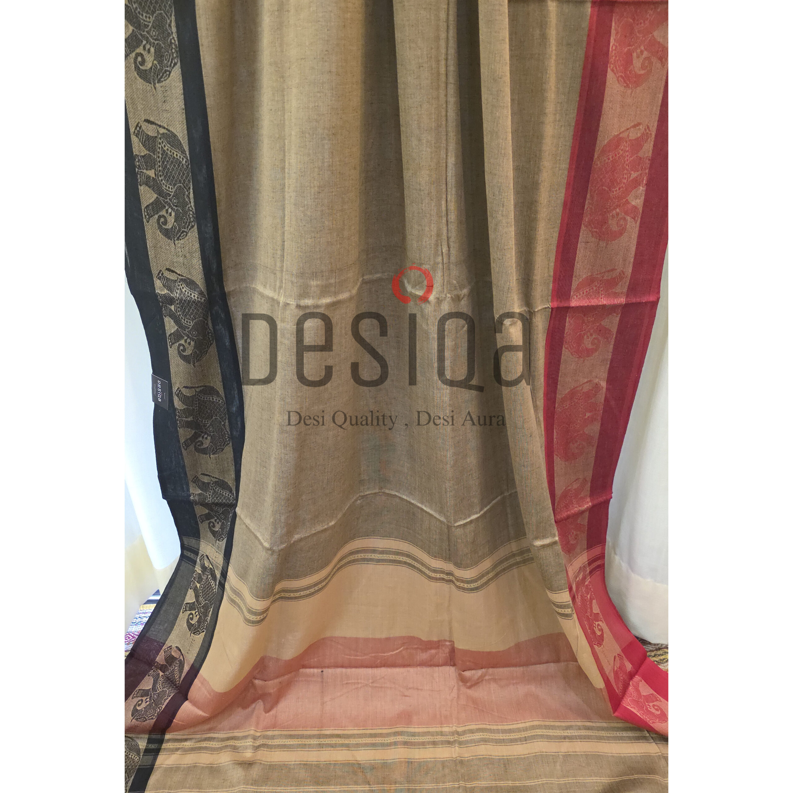 Brown & Red Dual Tone Colour Dual Par Pure Cotton Dhonekhali Handloom Sarees
