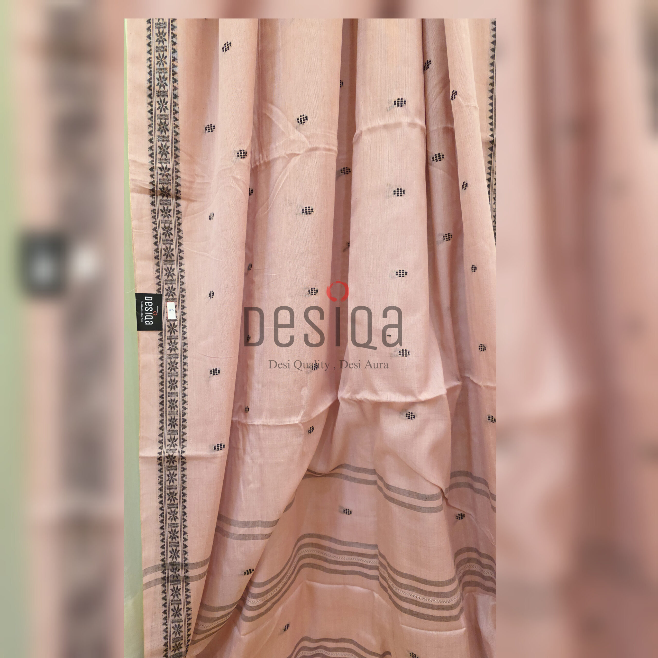 Light Pink Colour Black Motifs Dhonekhali Handloom Saree