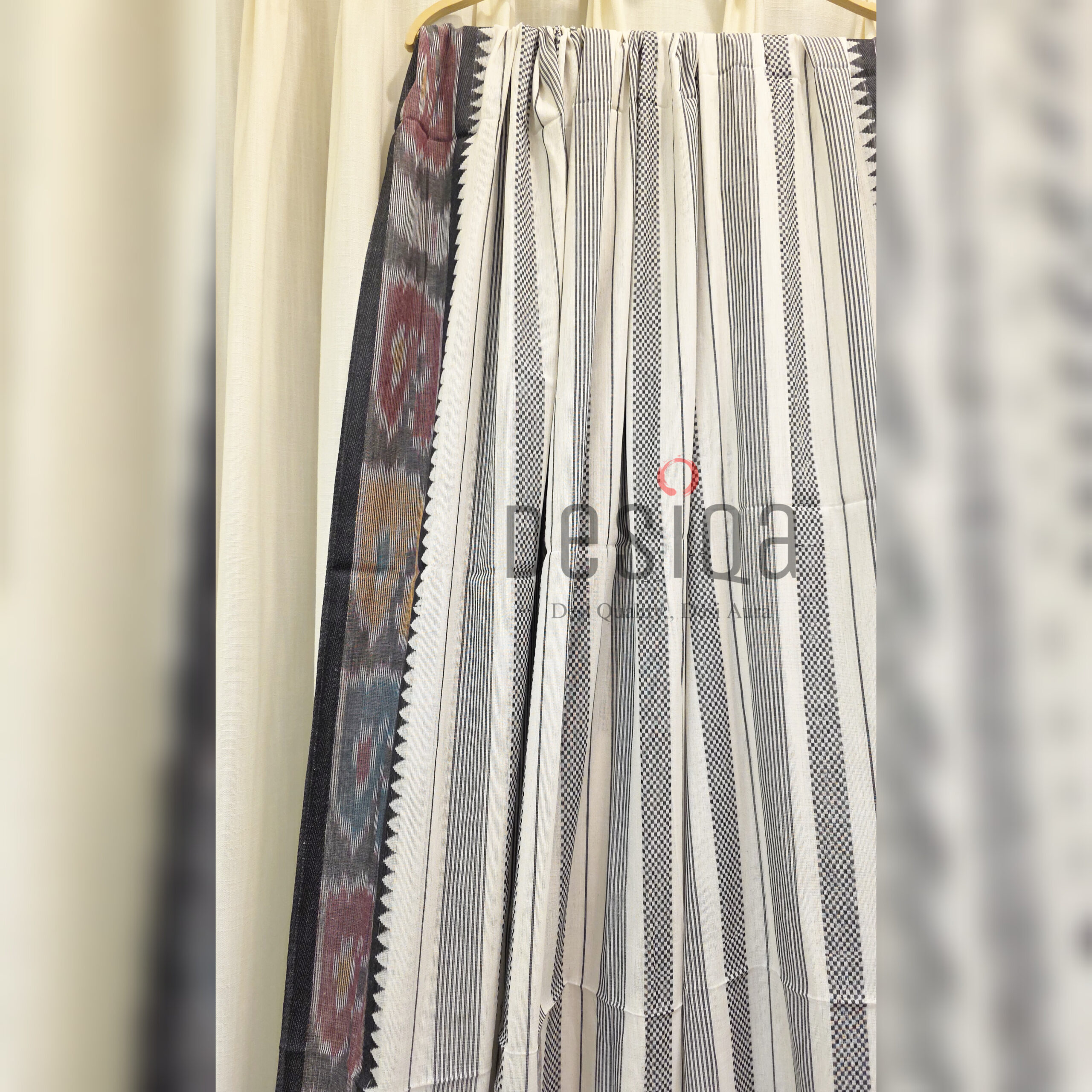 White & Black Colour Pure Cotton Begumpuri Handloom Saree