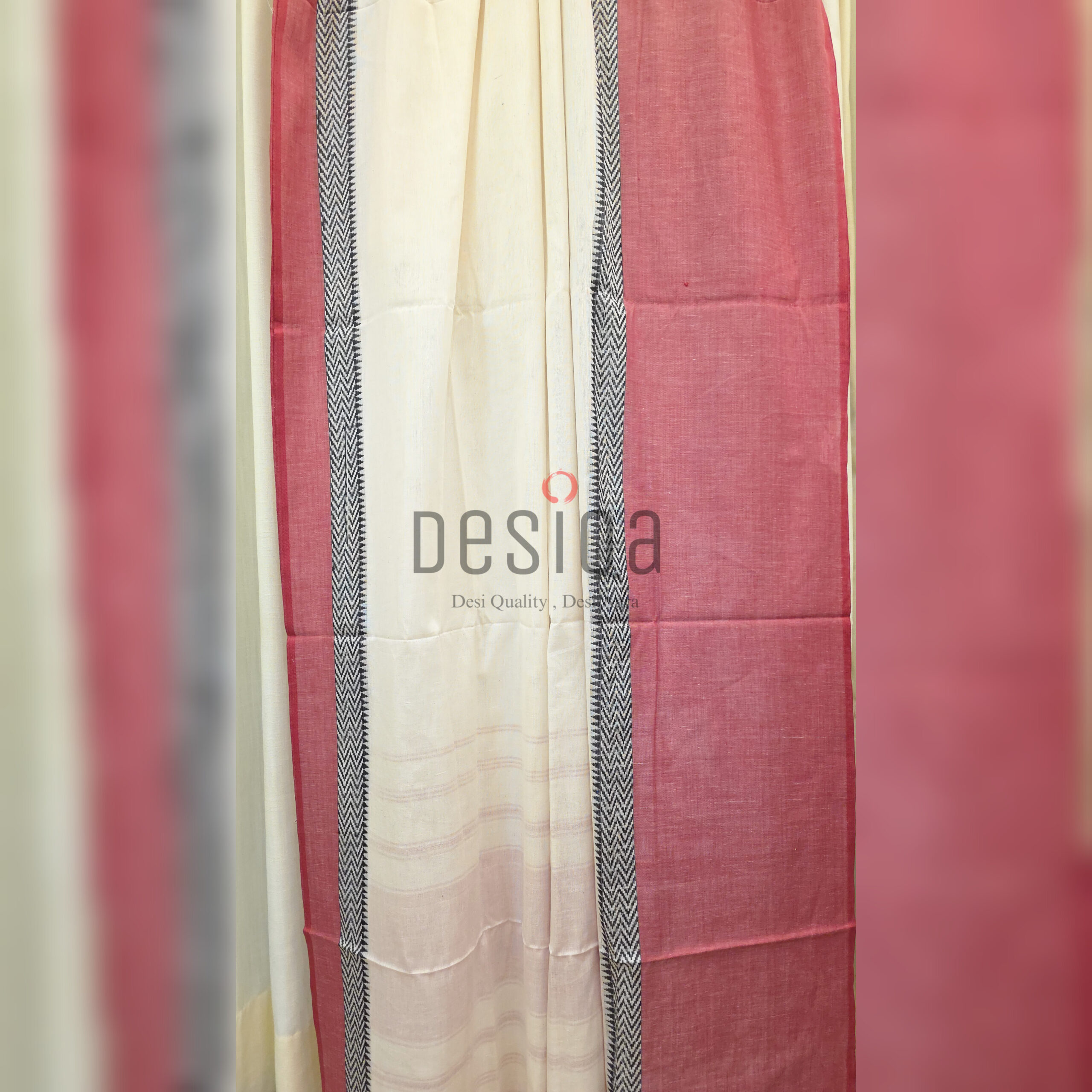 Off-White Colour Red Matha Par Dhonekhali Handloom Saree