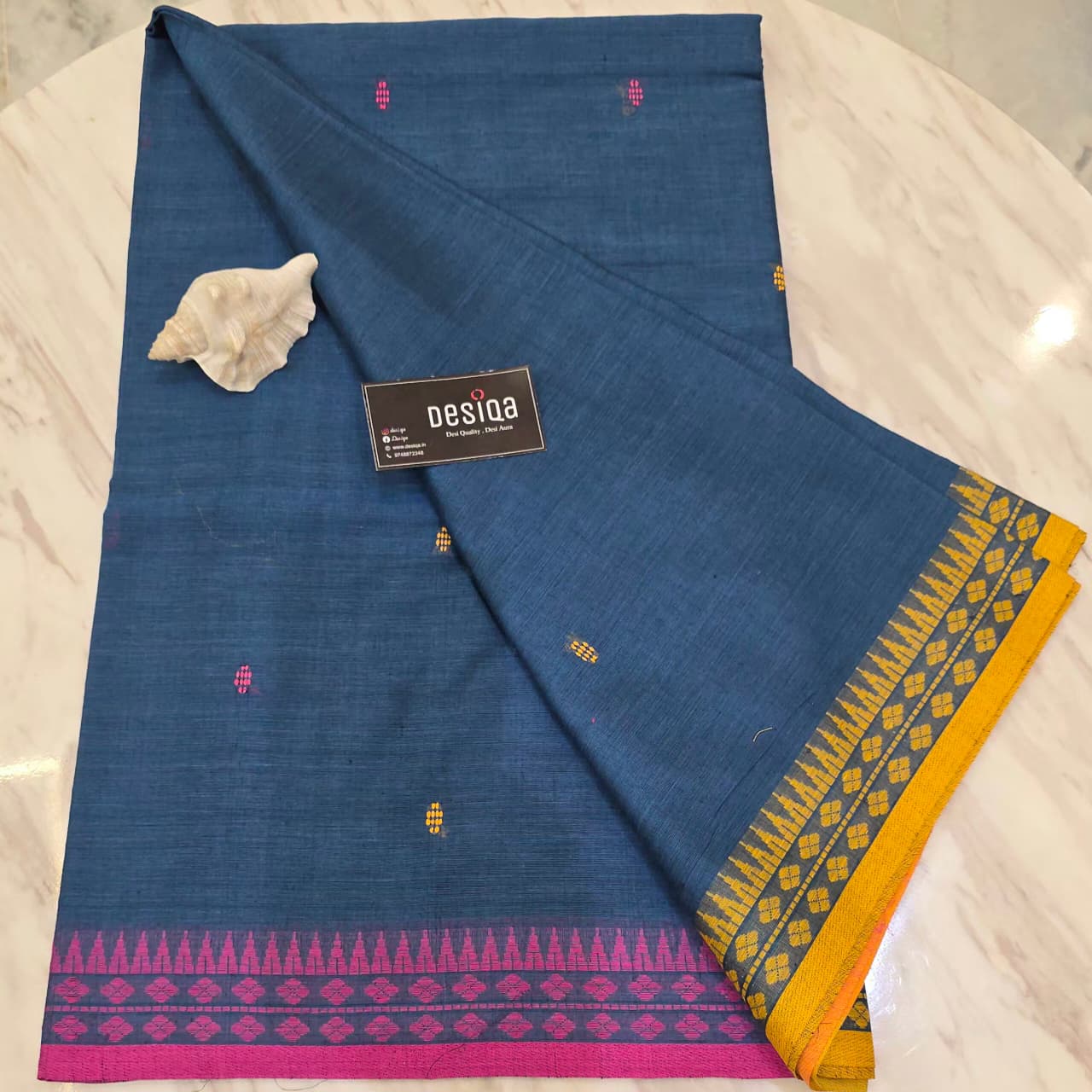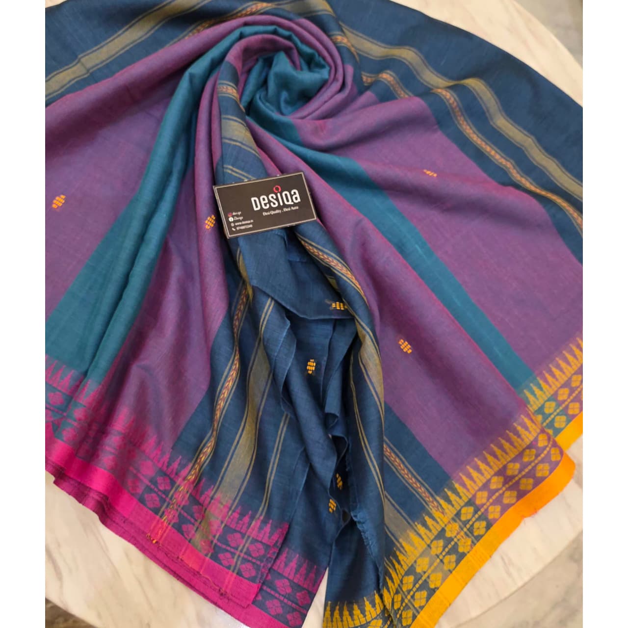 Border Type: Yellow & Pink Dual Colour hand-weaved border.