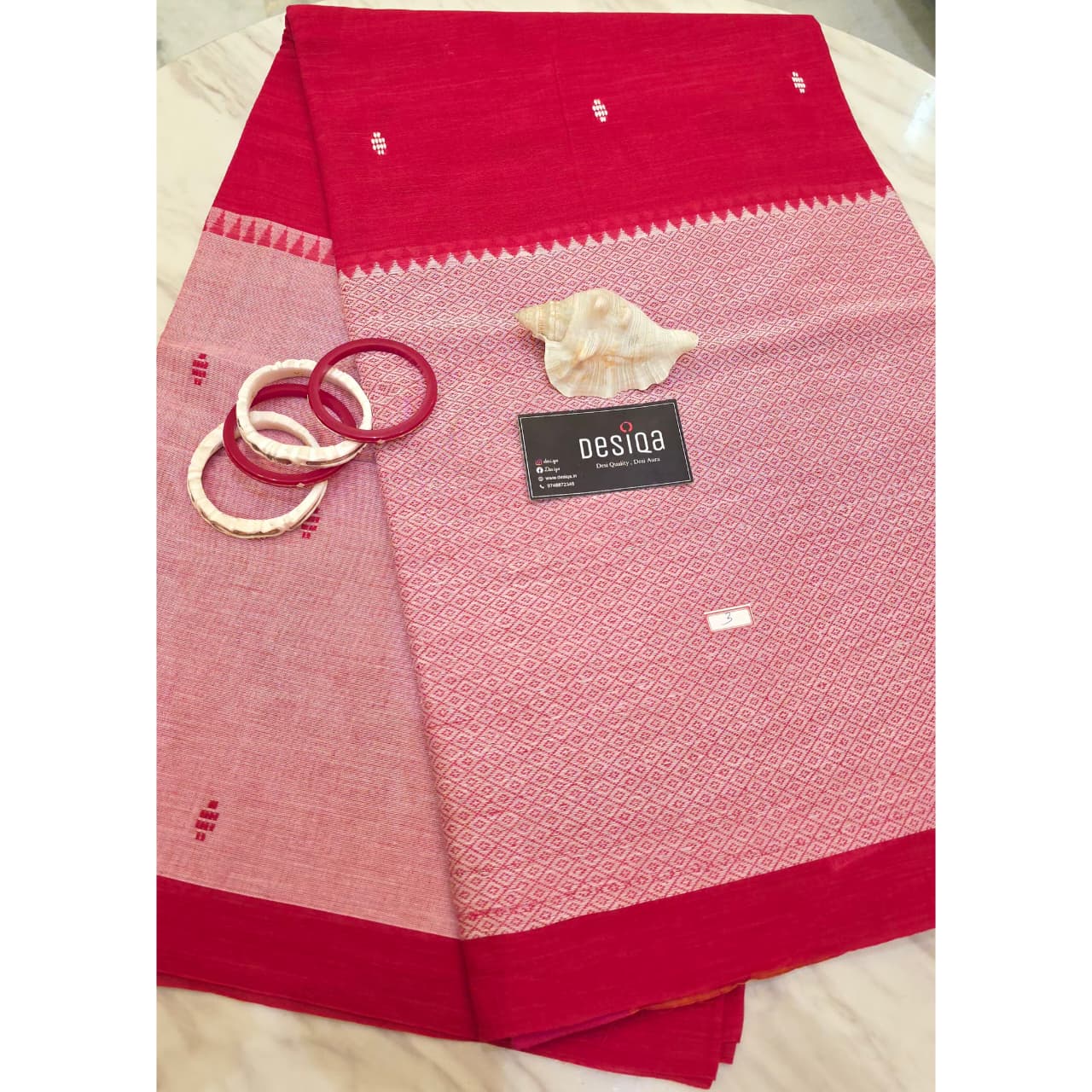 Red-White Brocade Dhonekhali Saree