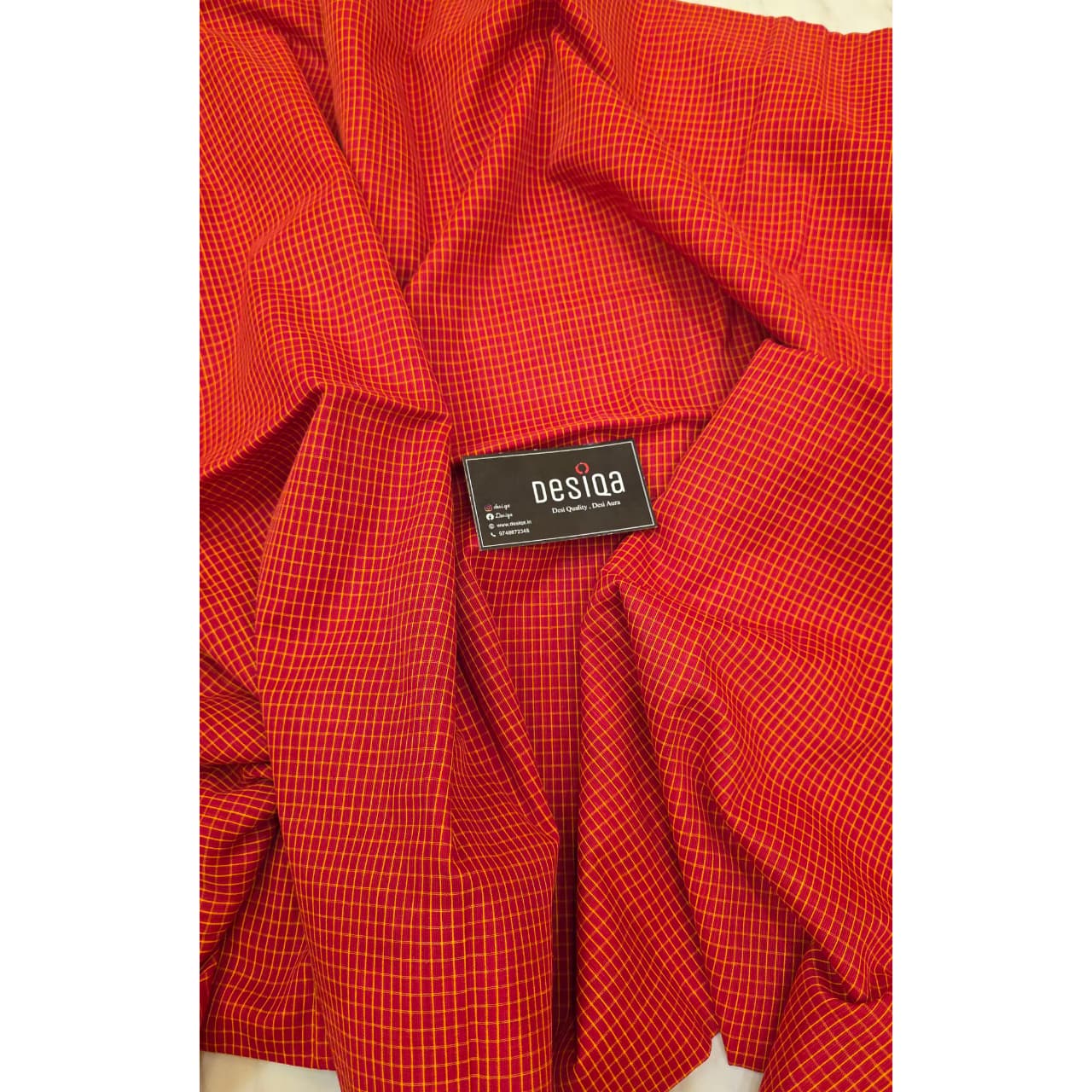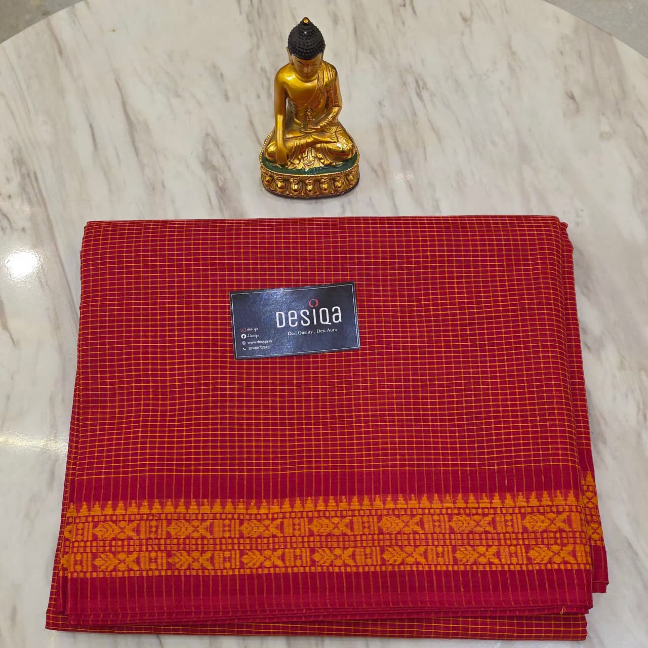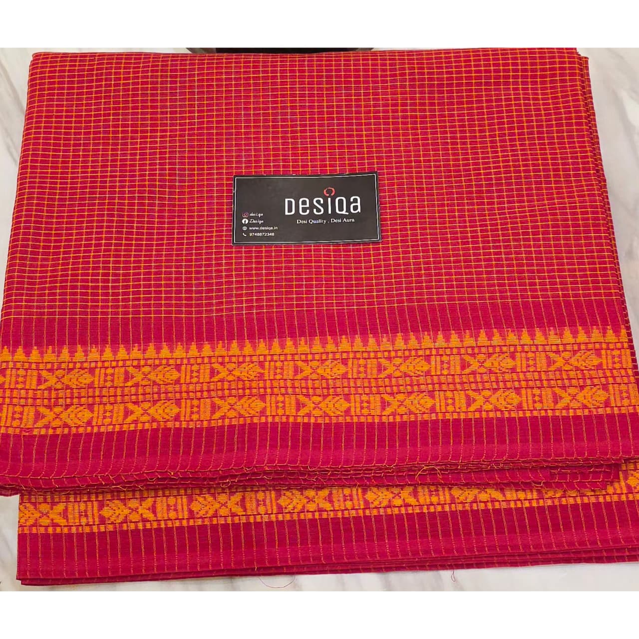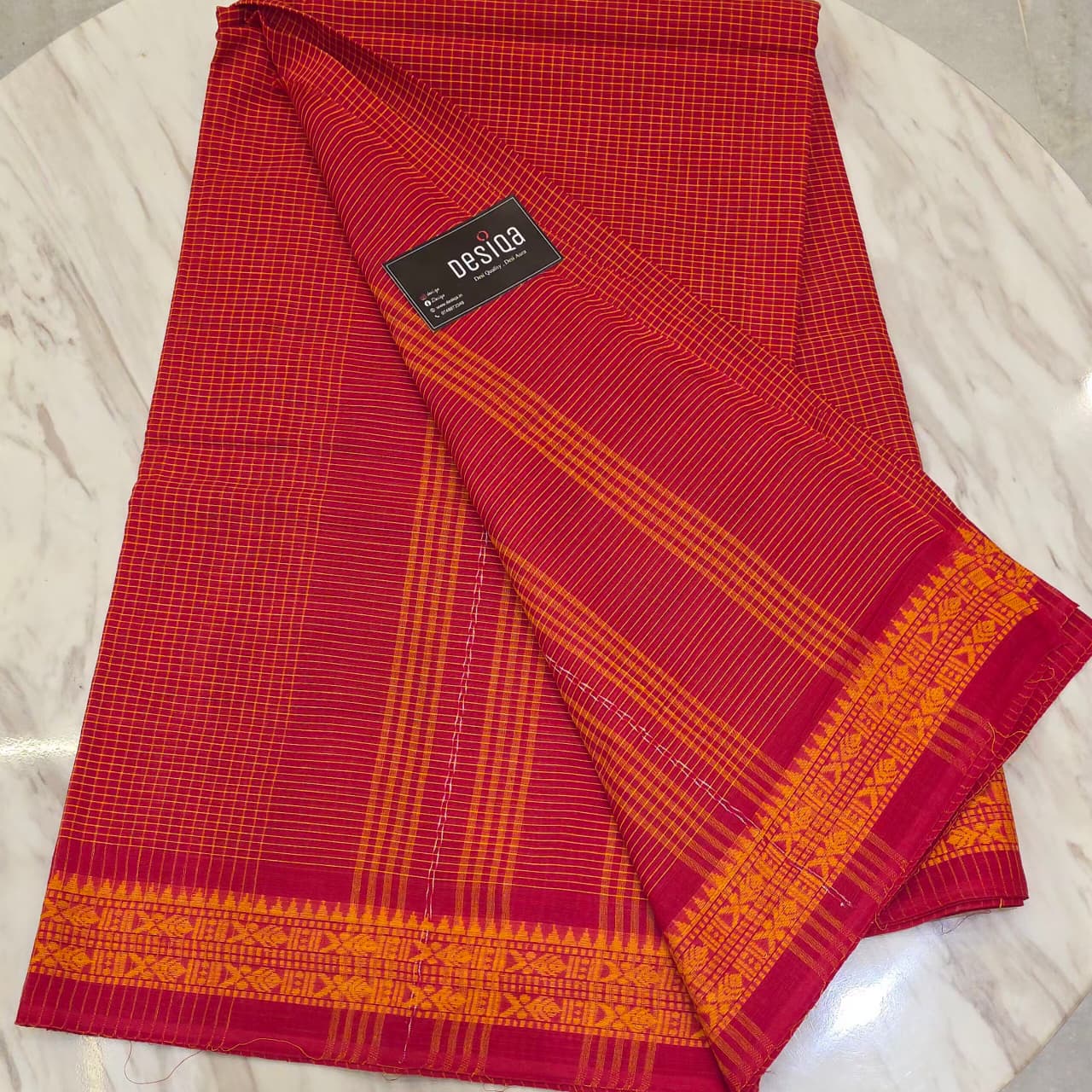 Red with yellow checks Dhonekhali Saree