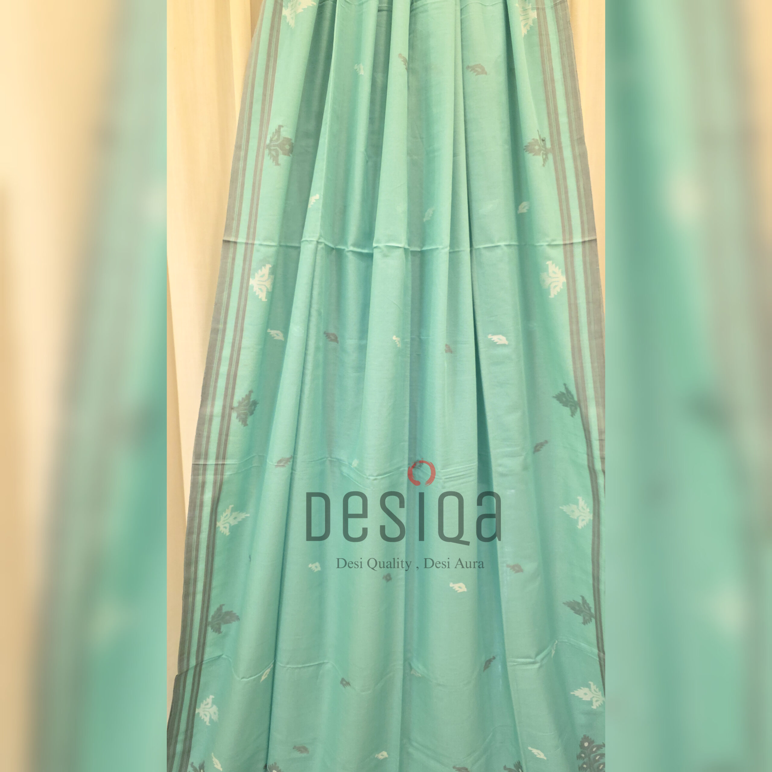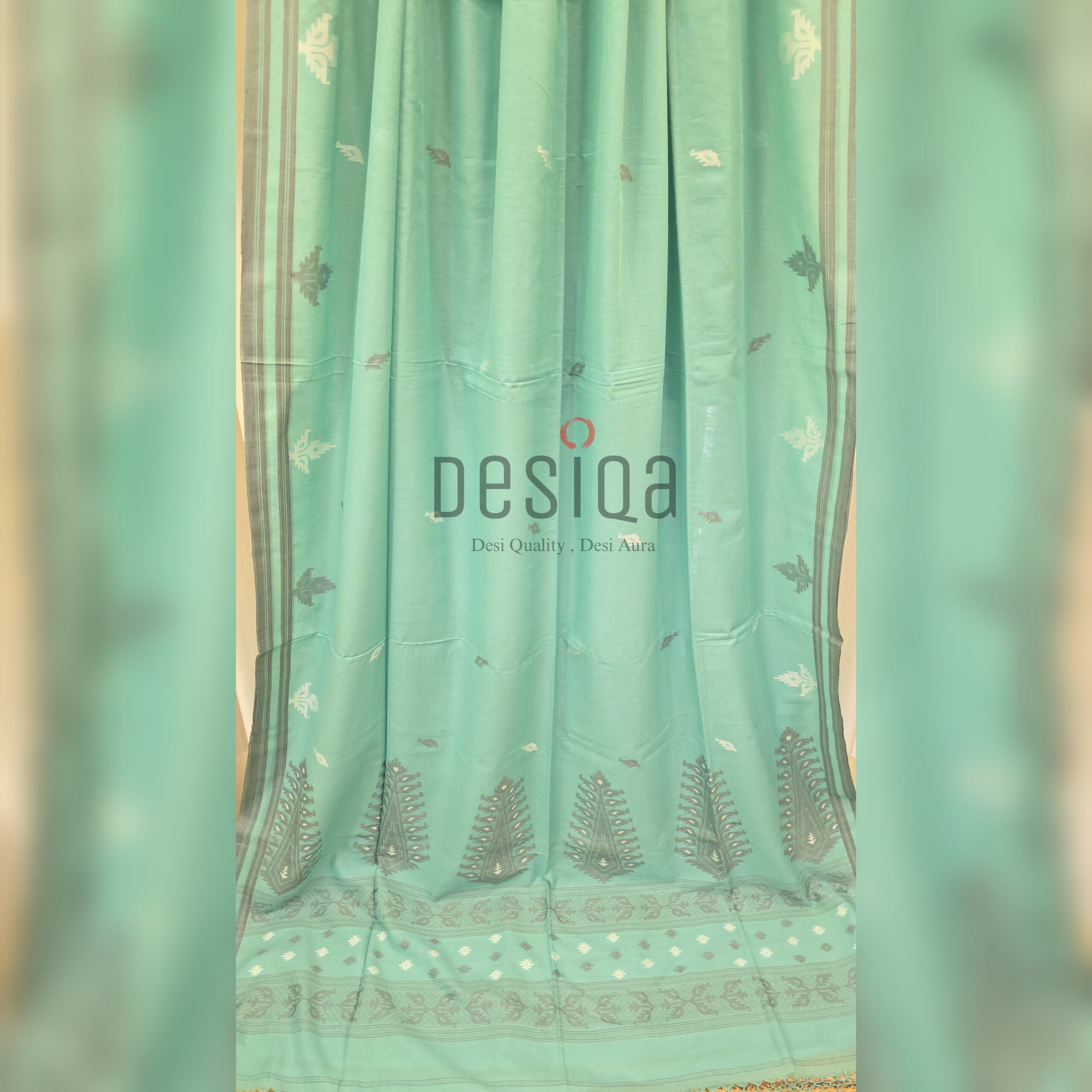 Sea Green Colour Pure Cotton Jamdani Work Handloom Saree