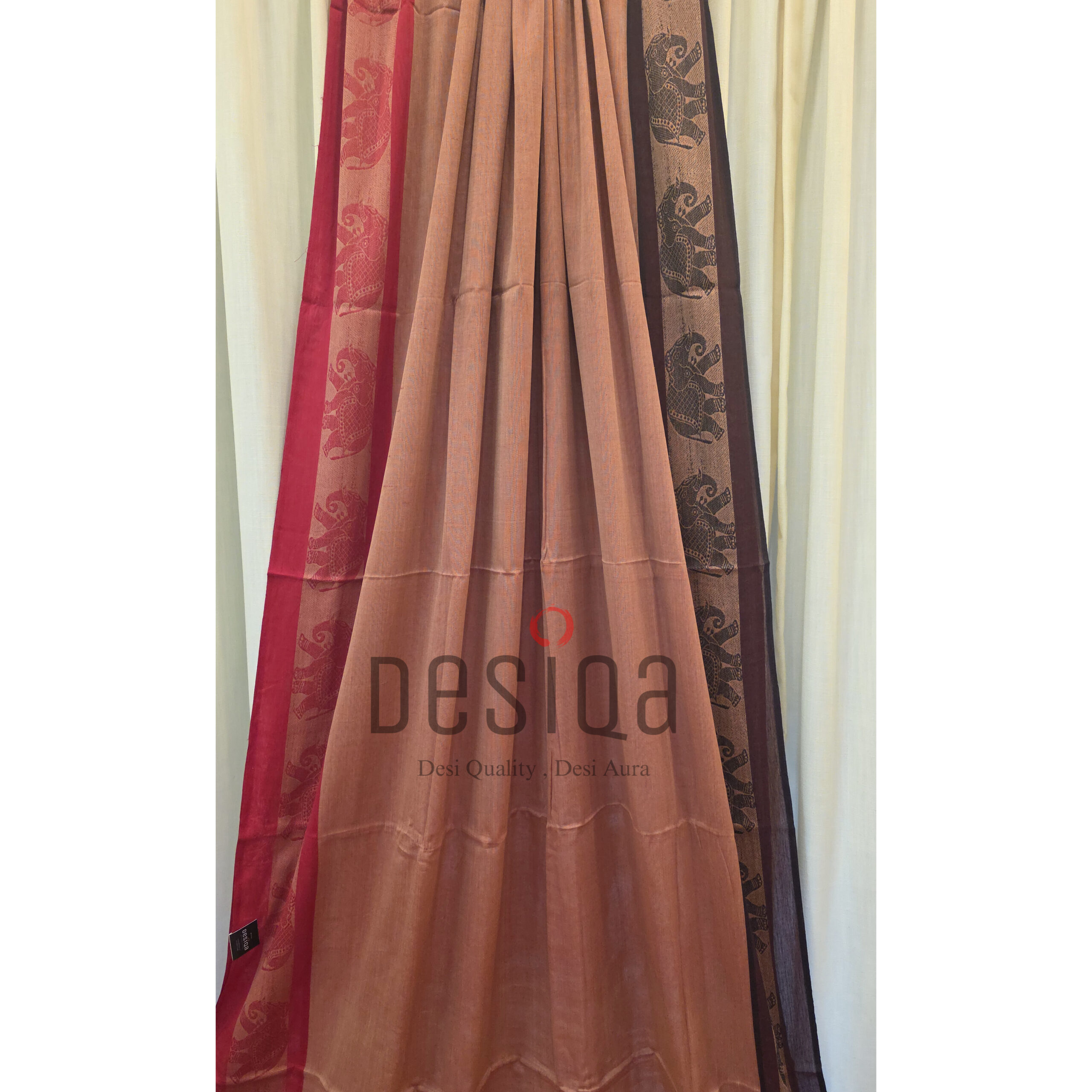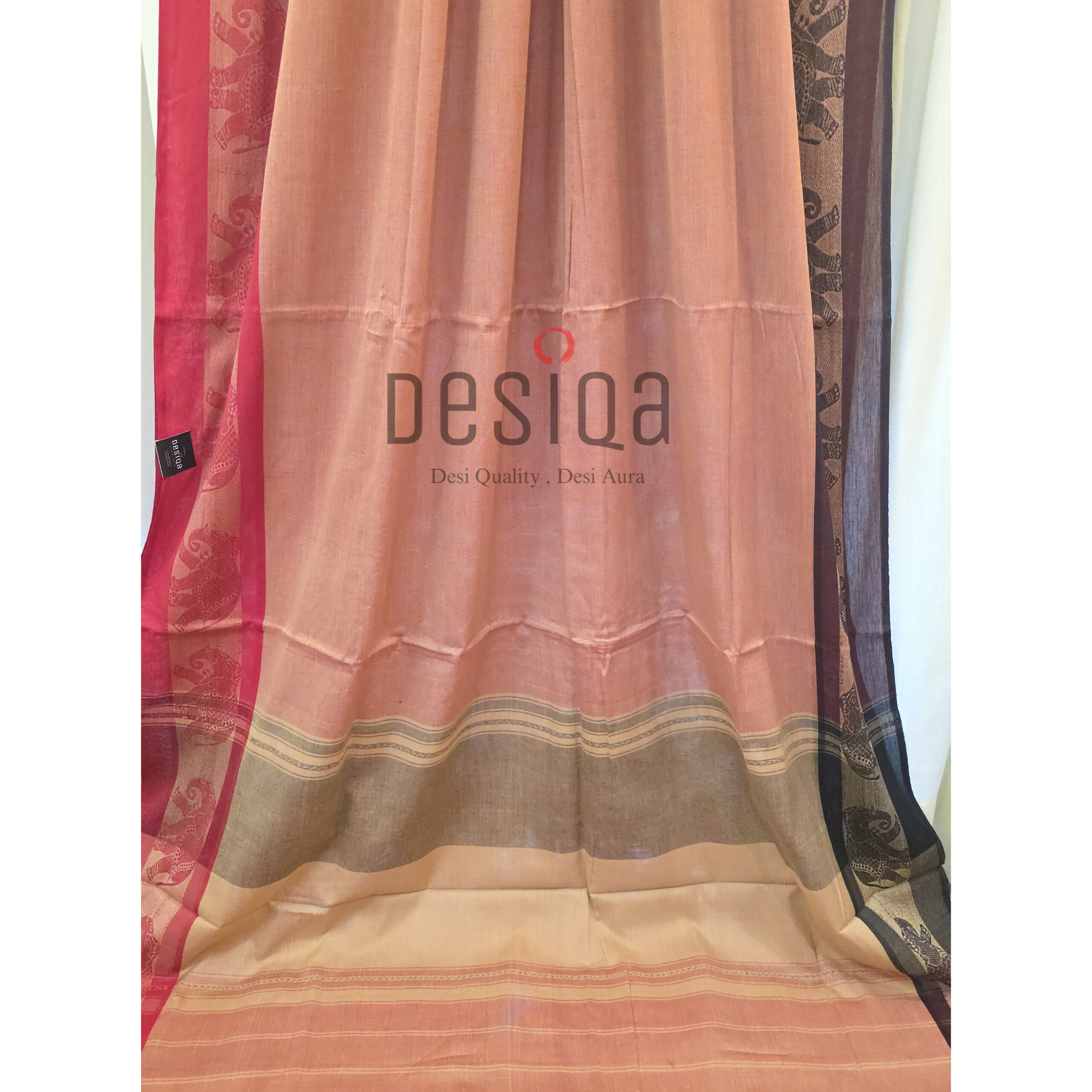 Sandal & Red Dual Tone Colour Dual Par Pure Cotton Dhonekhali Handloom Sarees