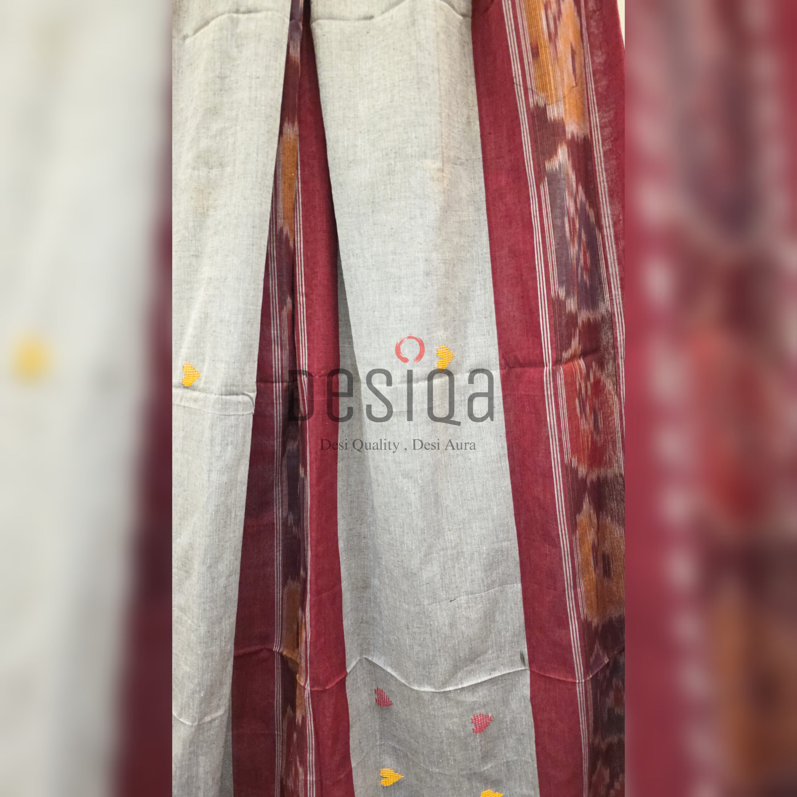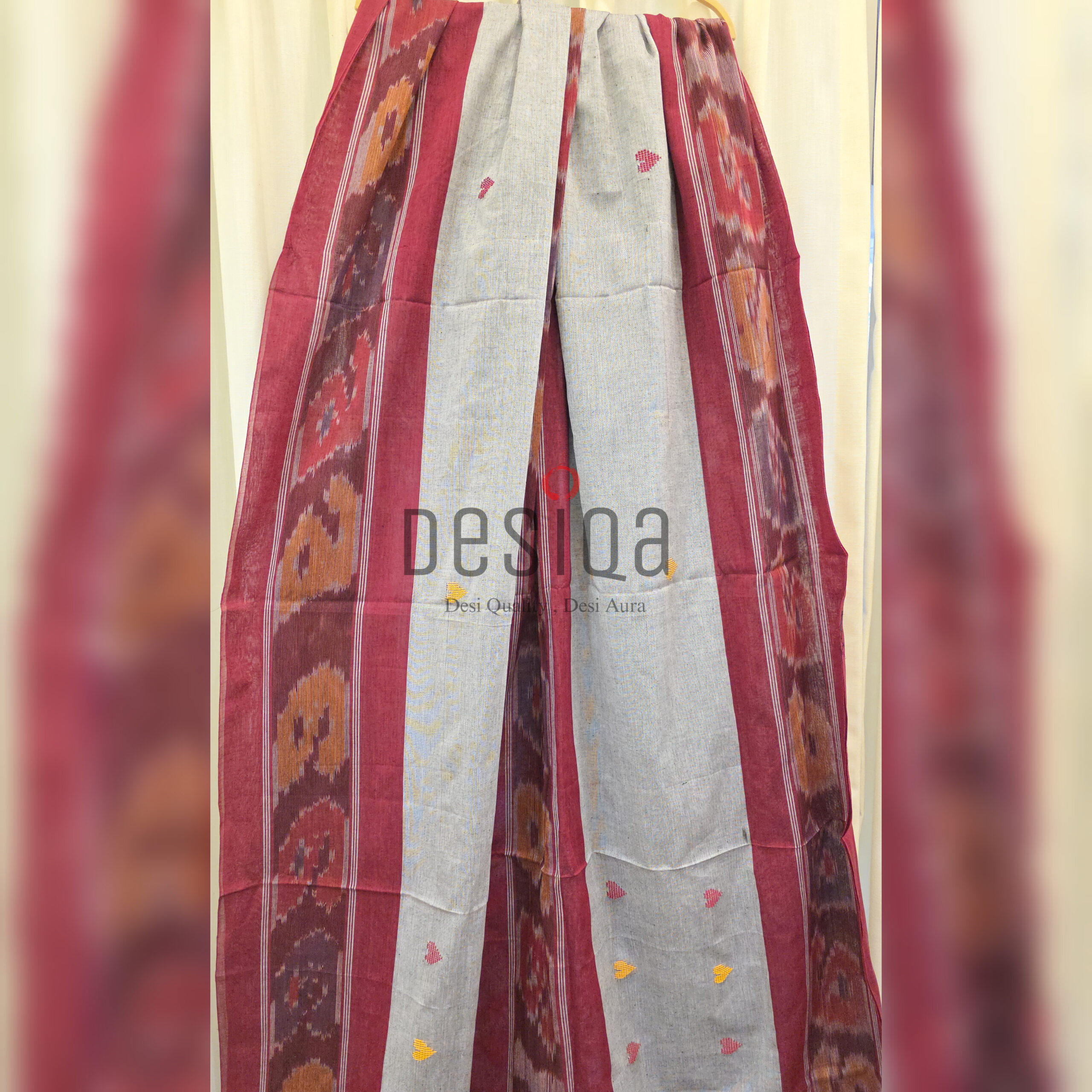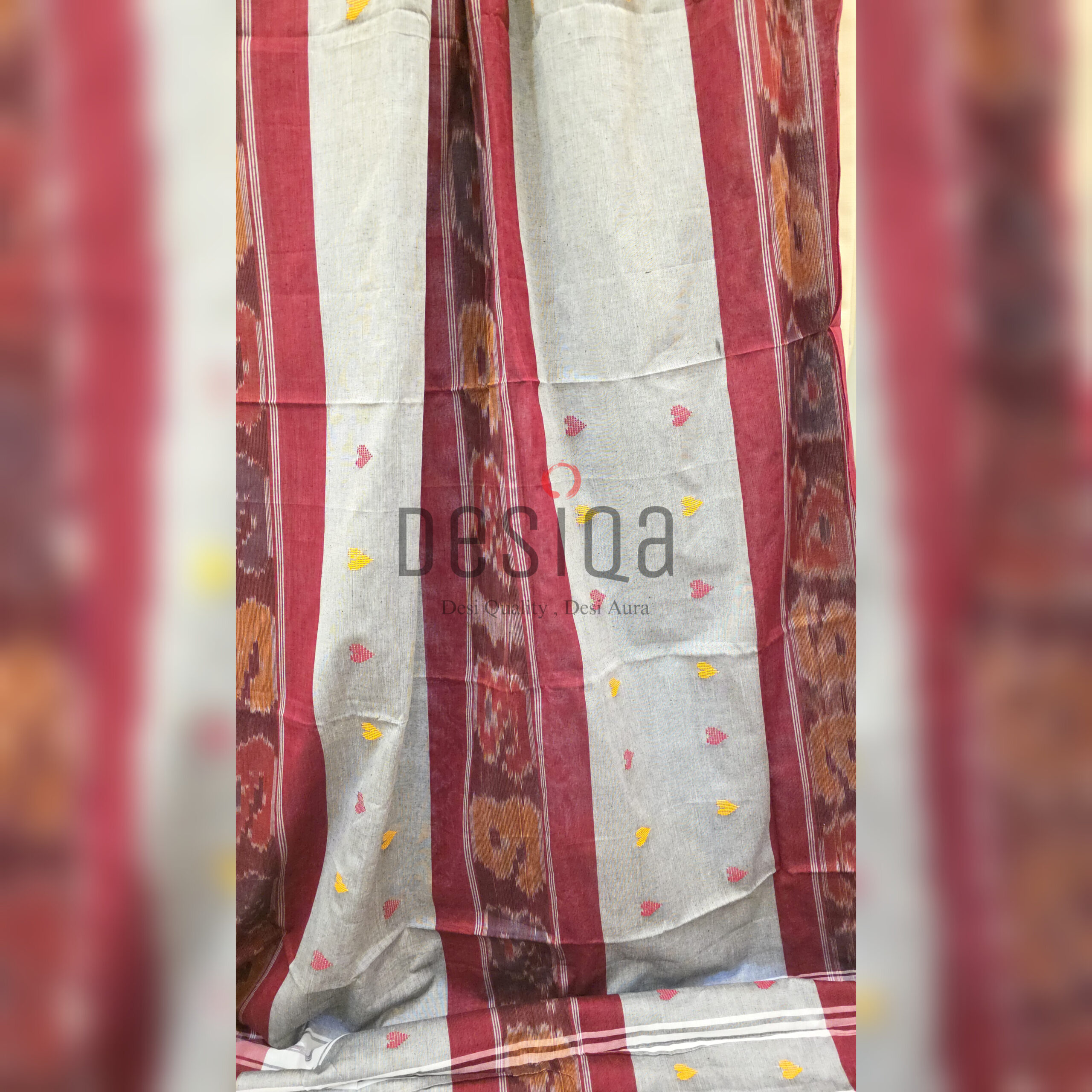 Silver Colour with Katki Par & Middle Dhonekhali Handloom Saree