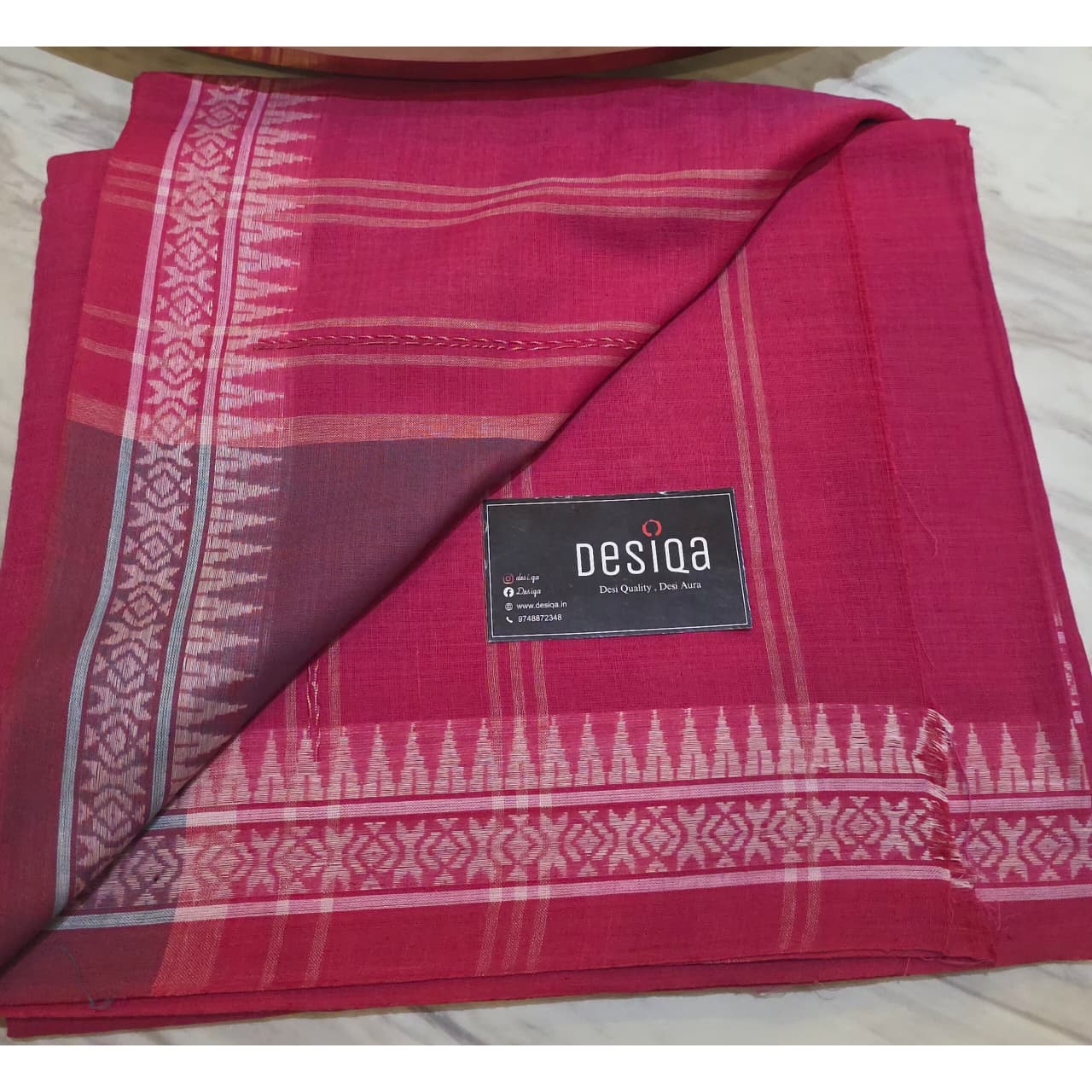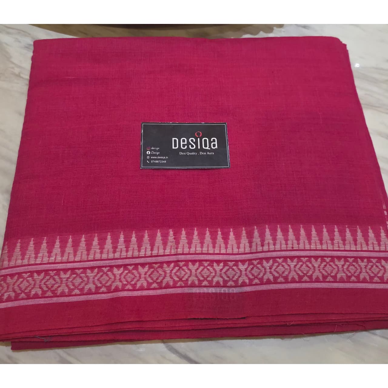 Design: Solid Dark Fuchsia Pink ,White color handwoven design and border