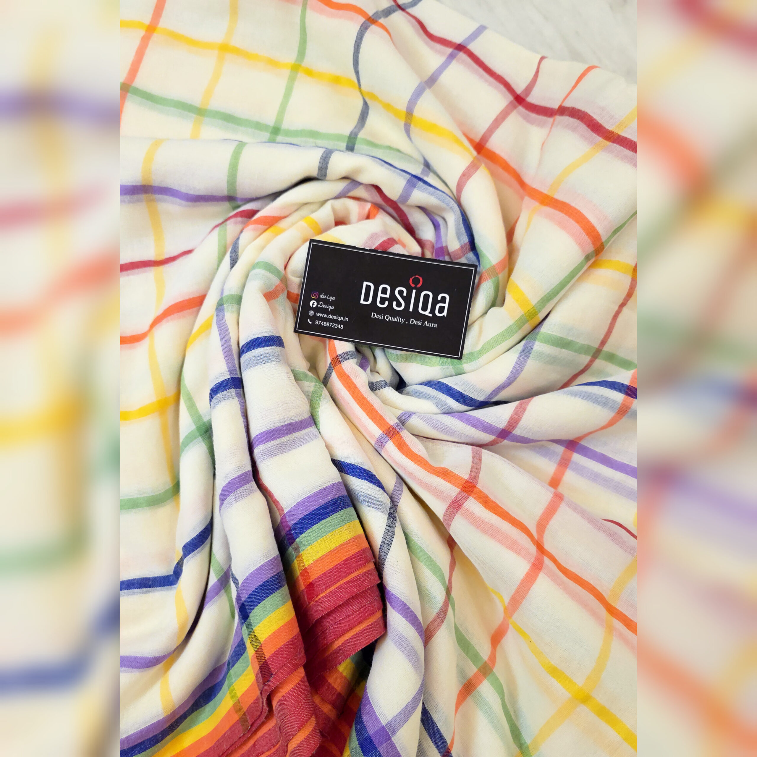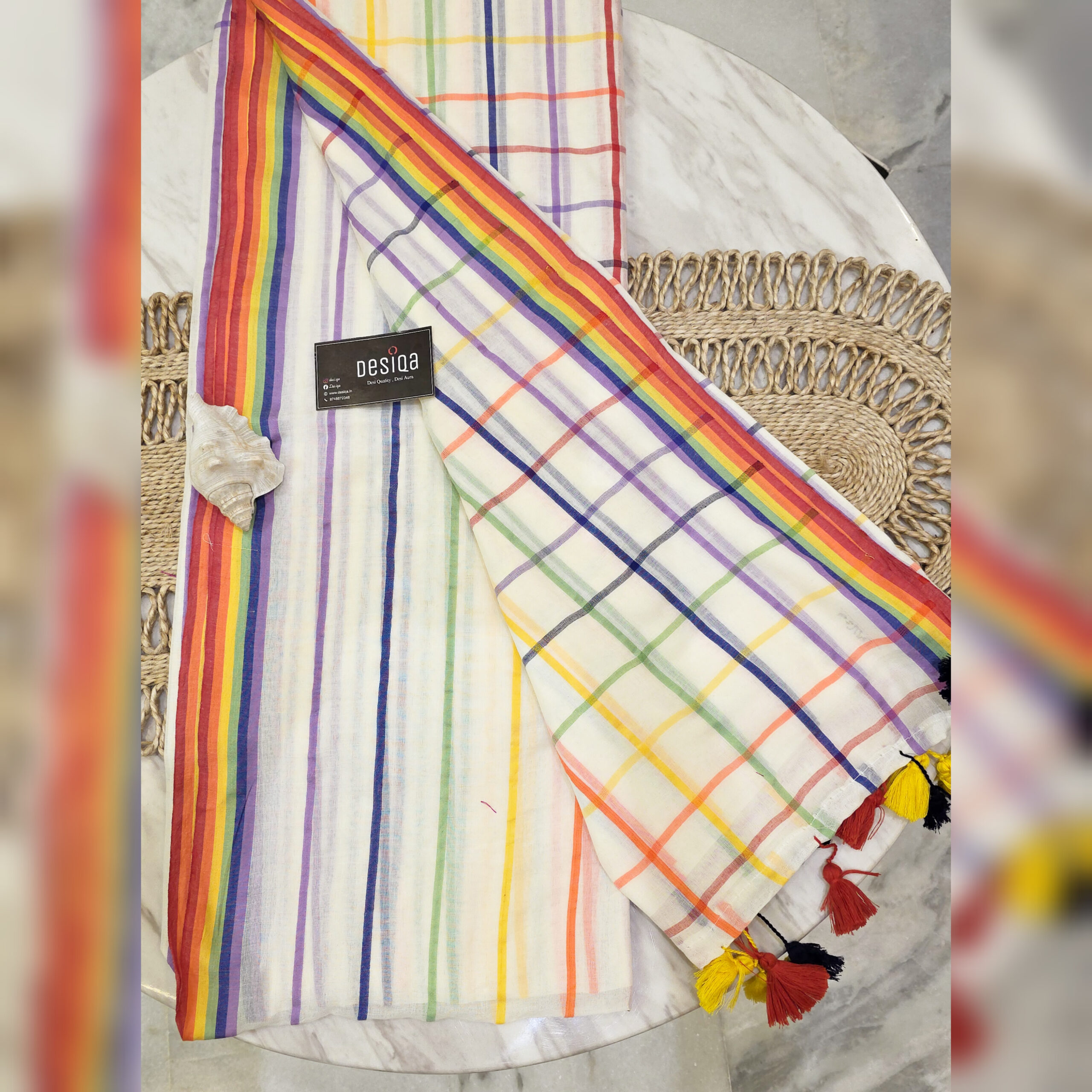 White with Multi Colour Check Mul Mul Cotton Handloom Saree