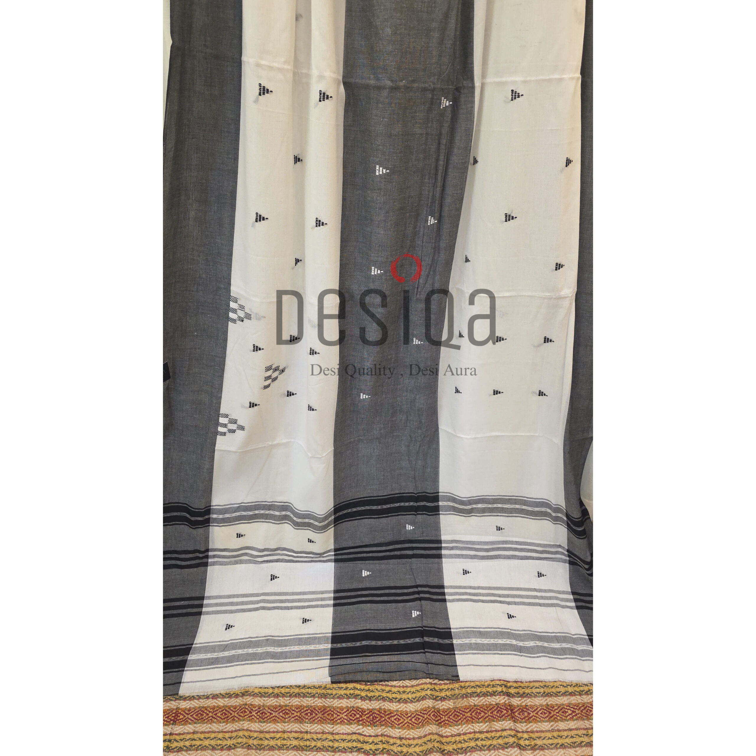 White & Black Colour Pure Cotton Dhonekhali Handloom Sarees