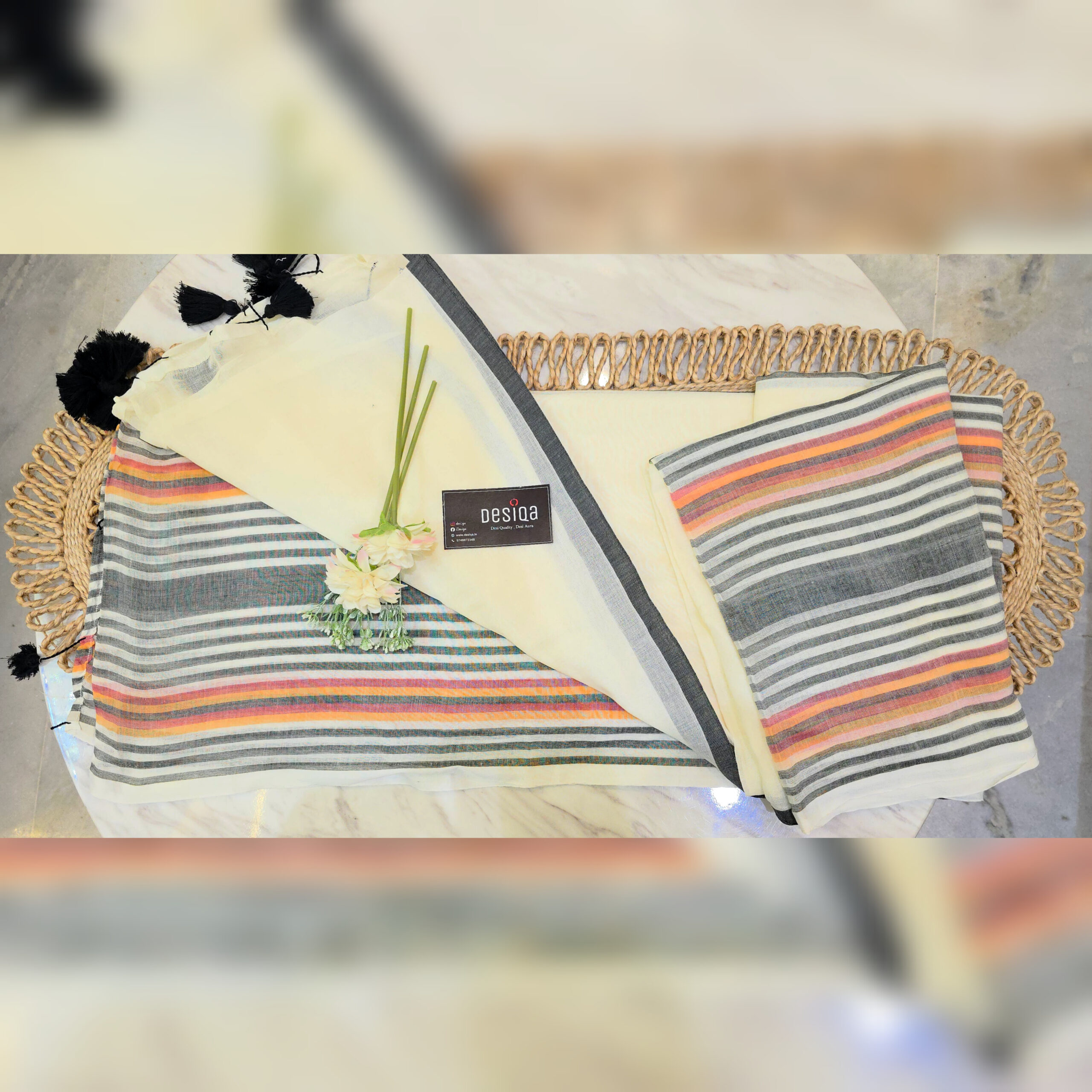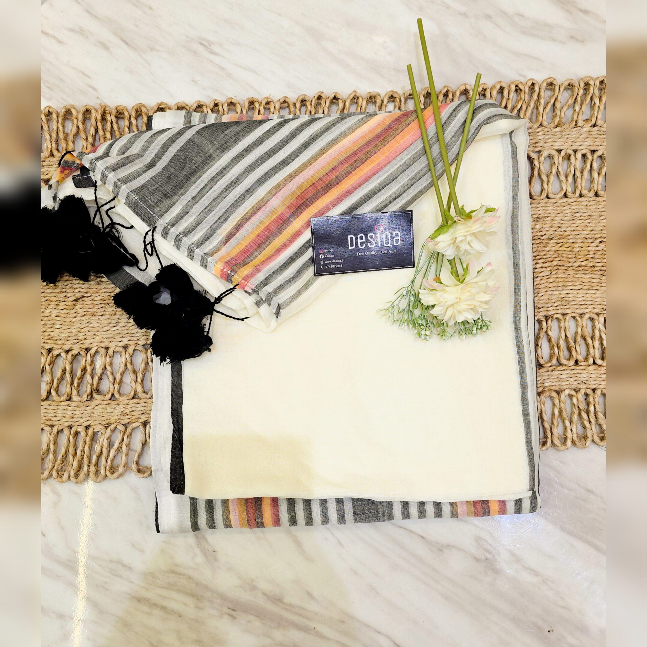 Pure 120 Count Mul Mul Cotton Saree ended with handmade tassels on Pallu.